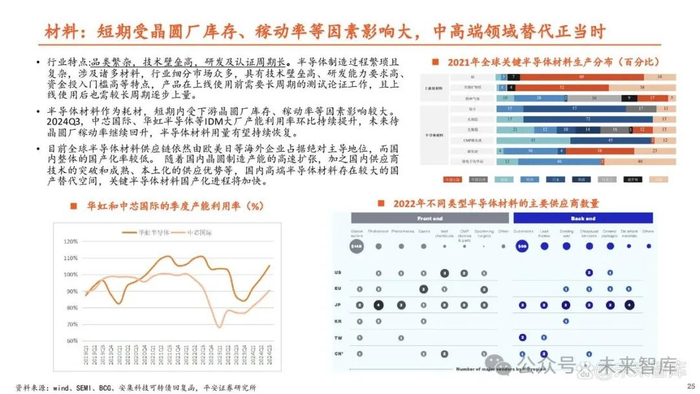 材料:品类繁杂,主要分为前道晶圆制造材料和后道封装材料两类