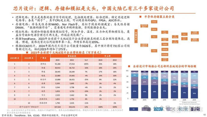 芯片设计:逻辑、存储和模拟是大头,中国大陆已有三千多家设计公司