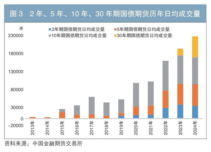 2024年,在国债现货市场交易活跃、波动有所增加的背景下,国债期货的运用场景更加丰富,其“服务”和“稳定”功能发挥得更加充分,有力地促进了资本市场和实体经济高质量发展。