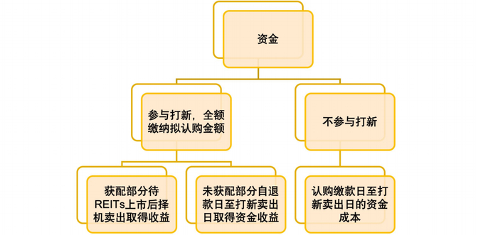 假设投资者参与REITs基金的打新,在上市后交易日t以收盘价卖出,则期间回报率为获配部分在上市后的涨幅+拟认购但未获配部分自退款日至t-1交易日(含)的资金回报率:
