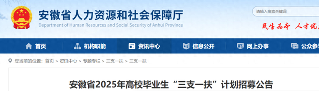 4月18日,安徽省人社厅官网发布了《安徽省2025年高校毕业生“三支一扶”计划招募公告》。具体内容如下。