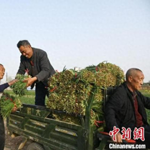 中新网运城4月18日电 (李庭耀 杨一敏)清明过后,山西省运城市闻喜县多个乡镇种植的6000亩头茬大田韭菜收割上市,引来辽宁、河北、河南、陕西等地的客商前来拉运。
