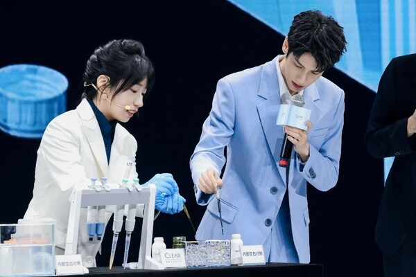 清扬C护专研代言人罗云熙先生与清扬研发人员通过实验展示清扬头皮专研系列产品的科技力