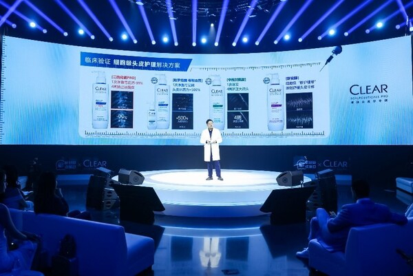 联合利华中国区头发护理市场营销负责人兼清扬品牌全球副总裁Elsharkawy Mohamed先生宣布清扬品牌首个头皮学专研系列正式全球首发