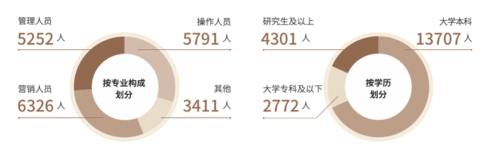 按学历划分,江苏银行拥有研究生及以上4301人,占比20.7%;大学本科13707人,占比66%;大学专科及以下2772人,占比13.3%。