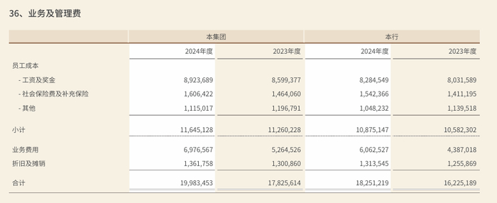 在费用方面,报告期内,江苏银行“业务及管理费”支出199.83亿元,同比增长12.11%。其中员工成本为116.5亿元,较2023年增加3.9亿元,增幅3.5%。