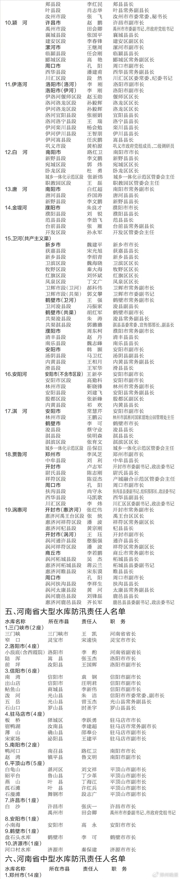 河南省防汛抗旱指挥部关于河南省防汛抗旱和重点防洪工程防汛责任人名单的通告
