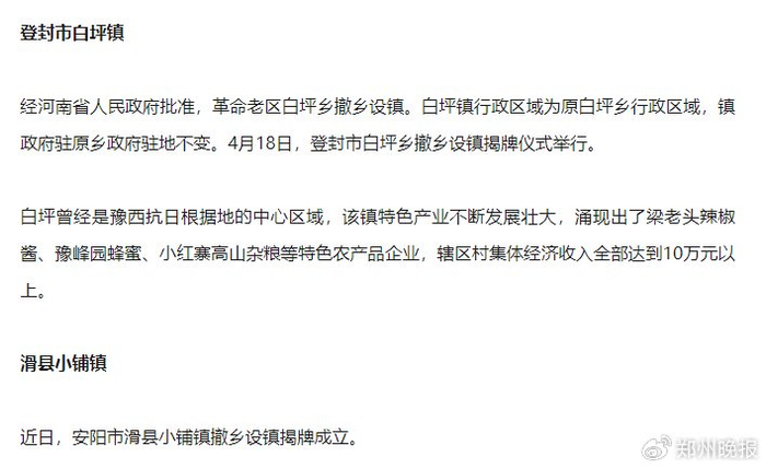 河南两地撤乡设镇
