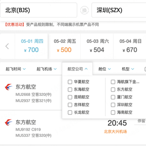 界面新闻在去哪儿网APP搜索发现,在航空公司筛选一栏,目前备选项已看不到南航。在去哪儿网PC端,搜索5月1日北京至深圳的航班时,航空公司名单也未有南航。
