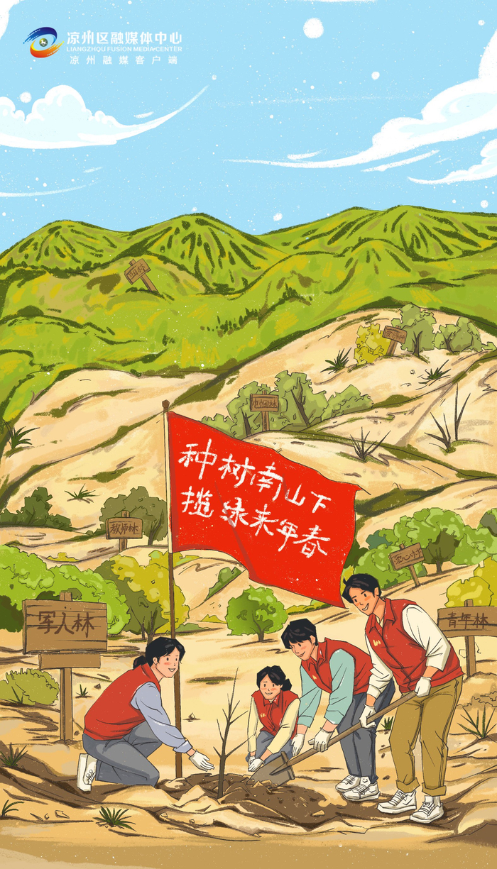 从扛起铁锹栽下树苗,到“云端”捐赠种下约定,从劳动尽责到捐资尽责,爱绿护绿早已成为凉州儿女的深情守望,化作守护青山的行动自觉。近年来,凉州区坚持以习近平生态文明思想为指引,在全社会播撒生态文明的种子,做绿水青山就是金山银山理念的积极传播者和践行者,以“功成不必在我、功成必定有我”的责任担当,汇聚众力、久久为功,以实实在在行动和成效交出一份靓丽答卷。(文:张珊珊;手绘:袁佳丽)