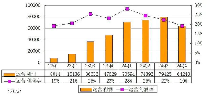 霸王茶姬2024年第四季度运营利润为6.42亿元,运营利润率为19%。