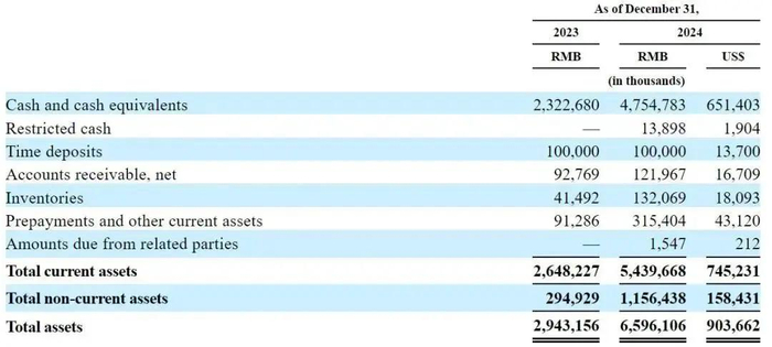 其中,霸王茶姬持有的现金及现金等价物为47.55亿元(约6.51亿美元),存款为1亿元,应收账款为1.22亿元,存货价值为1.32亿元,预付款和其他流动资产为3.15亿元(约4312万美元)。
