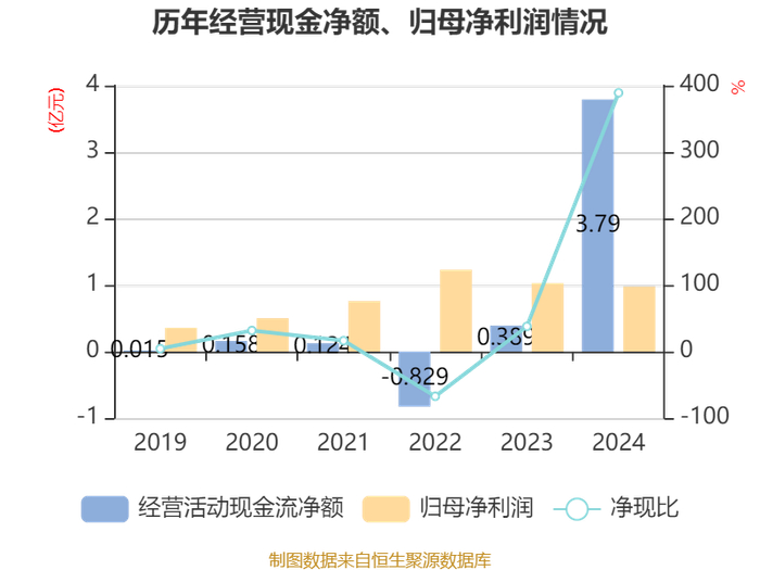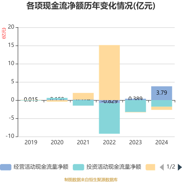 截至2024年,公司经营活动现金流净额为3.79亿元,同比增长874.77%;筹资活动现金流净额-8745.39万元,同比减少7709.2万元;投资活动现金流净额-1.8亿元,上年同期为-3.27亿元。