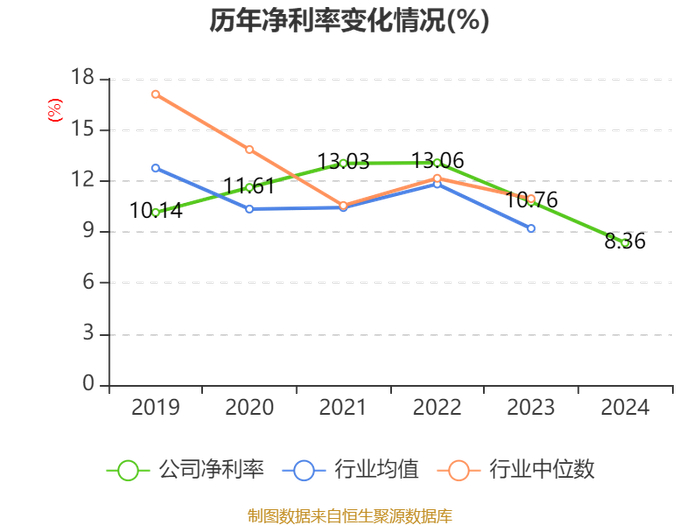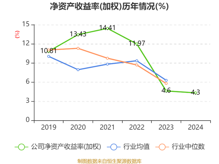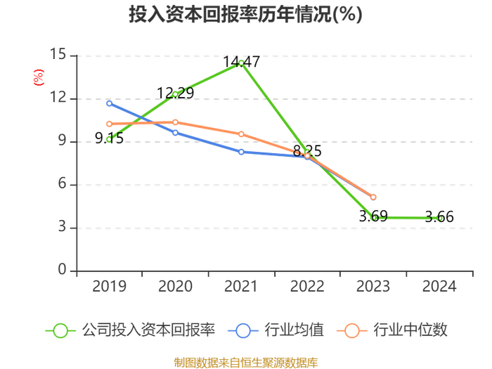 数据显示,2024年公司加权平均净资产收益率为4.3%,较上年同期下降0.3个百分点。公司2024年投入资本回报率为3.66%,较上年同期下降0.03个百分点。