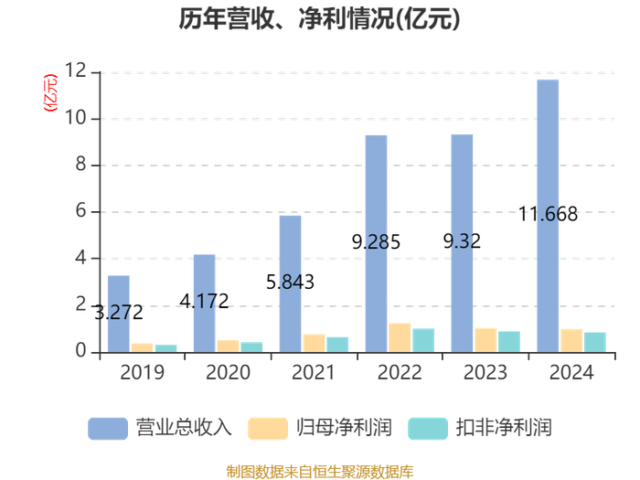 中证智能财讯德邦科技(688035)4月19日披露2024年年度报告。2024年,公司实现营业总收入11.67亿元,同比增长25.19%;归母净利润9742.91万元,同比下降5.36%;扣非净利润8365.7万元,同比下降4.56%;经营活动产生的现金流量净额为3.79亿元,同比增长874.77%;报告期内,德邦科技基本每股收益为0.69元,加权平均净资产收益率为4.30%。公司2024年度分配预案为:拟向全体股东每10股派现2.5元(含税)。