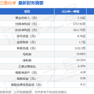 您好,感谢您对三维化学的关注!公司围绕“平台、机会、延链、效率”四个发展关键词,全面落实“优化做精存量,延链实现增量”的工作方针,稳健经营、自信前行,发挥集团管控优势,优化组织结构,加大科研投入,优化产业链条,加速成果转化,拓展新兴市场,高质量推进在手订单,努力实现提质增效,公司实现稳健发展。2024年,公司实现营业总收入人民币255,429.04万元,同比下降3.88%,实现归属上市公司股东的净利润人民币26,264.85万元,同比下降6.92%。