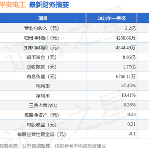 据证券之星公开数据整理,近期平安电工(001359)发布2025年一季报。截至本报告期末,公司营业总收入2.59亿元,同比上升18.0%,归母净利润5237.29万元,同比上升22.69%。按单季度数据看,第一季度营业总收入2.59亿元,同比上升18.0%,第一季度归母净利润5237.29万元,同比上升22.69%。本报告期平安电工应收账款上升,应收账款同比增幅达44.23%。