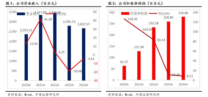 2024年全年营业收入为26.6亿元,同比下降4.5%;归母净利润为2.8亿元,同比上升8.1%;扣非归母净利润为2.37亿元,同比上升24.6%。