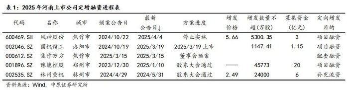 按照最新公告日统计,2025年3月份以来,3家公司更新增发融资进展。其中:国机精工增发股份于3月19日上市,风神股份增发经上市委通过后停止实施,焦作万方增发预案经董事会通过。目前,河南增发融资的途3家公司中,有1家通过董事会、2家通过股东大会。3家预计合计定增融资26亿元,均为主板市场上市公司。