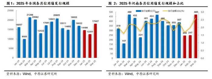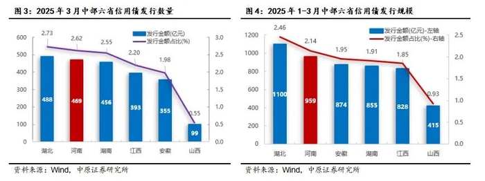 3月份,河南信用债券融资规模全国占比进一步升至2.62%,为近2年单月最高水平。Wind数据显示,3月份,河南省发行信用债发行79只,融资规模468.92亿元,环比增长89.82%;前3个月,累计发行165只信用债,融资规模959.1亿元,同比增长1.55%,排名全国第12位、中部六省第2位。