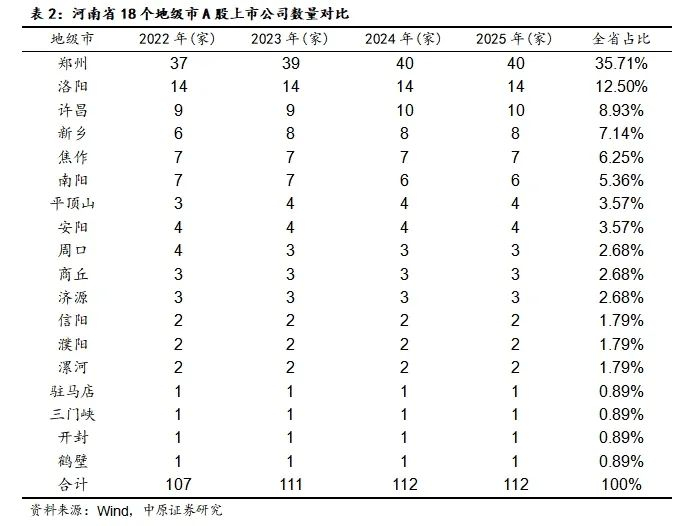 4同时在A股和H股的上市公司按照1家核算,包括6家分别为:郑煤机、郑州银行、中原证券(H股为中州证券)、洛阳玻璃、洛阳钼业、一拖股份(H股为第一拖拉机股份)。A股数量包括注册地拟变更为河南新乡市的中威电子(300270)。