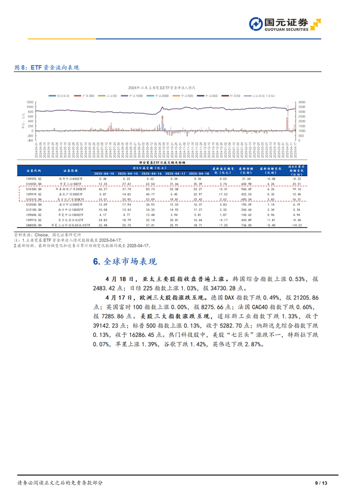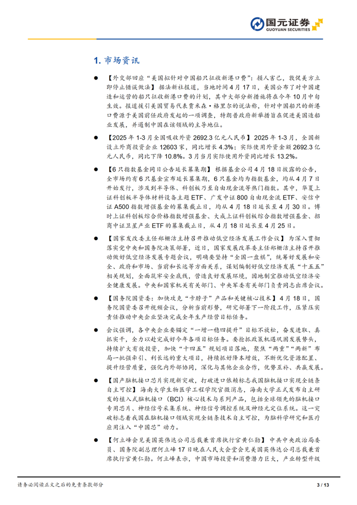 本报告摘自国元证券2025年4月18日已发布的《2025年4月18日沪指收跌止步8连阳,两市成交额继续缩量》查看原文,具体报告及分析内容请详见报告。若因对报告的摘编等产生歧义,应以报告发布当日的完整内容为准。