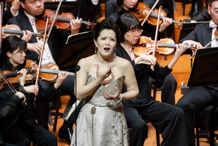 抒情女高音宋元明以“丝绸般嗓音”诠释理查·施特劳斯《最后四首歌》,柔美且具有力量。她唱出了渐行渐远的挥别之情,以及美人迟暮之感总是令人难以释怀:春梦了无痕,九月果实累花枝,灵魂可以栖息之地……无锡交响乐团精心细分的弦乐不仅为庞大的乐队,更为女高音独唱提供了明晰的基础。每首歌曲都以简洁的管弦乐乐段为背景,它们起伏不定,轻响错落,丝丝扣入人心,精美到甚至可以与女高音融为一体。