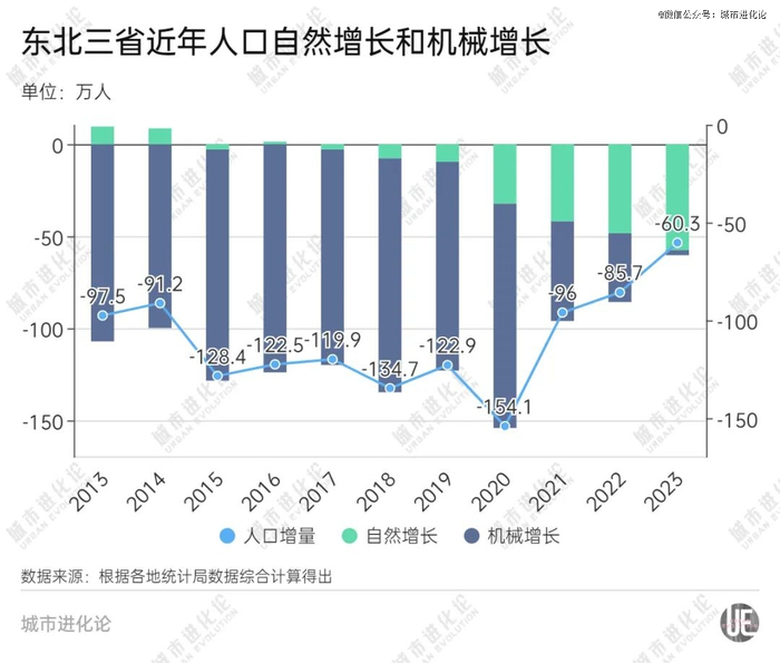 中国人口学会副会长、西南财经大学社会发展研究院教授杨成钢向城市进化论表示,东北的人口负增长趋势,不仅有老龄化的影响,也是较多育龄人群外迁流动造成的。虽从人口结构上,短期看不到扭转的苗头,但不排除在新的环境下,东北重获产业发展机遇,从而吸引青年人口回流,促进人口增长。