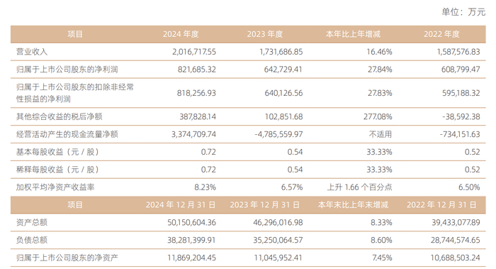 数据显示,2024年公司加权平均净资产收益率为8.23%,较上年同期上升1.66个百分点。
