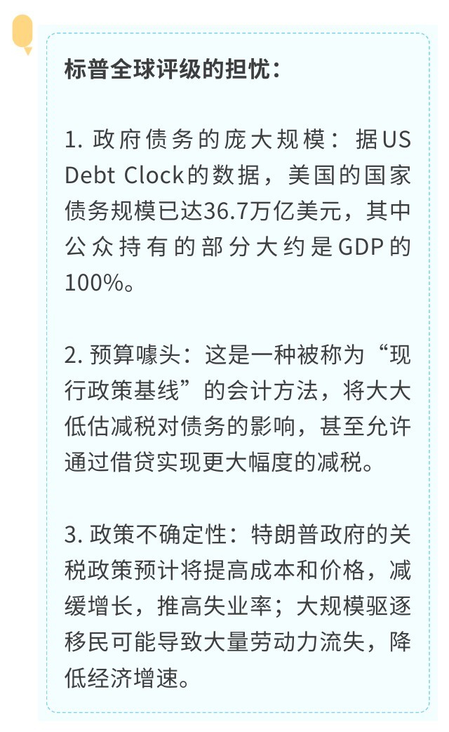 在4月14日的一份报告中,标普暗示称,如果未来发生任何使美国财政状况恶化的事情,它可能会将美国信用评级从目前的AA+再下调一级。