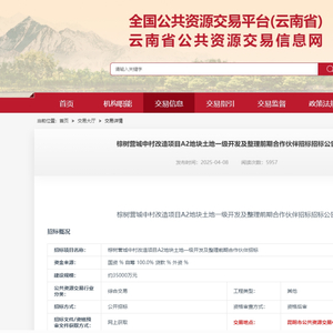 近日,云南省公共资源交易信息网发布“棕树营城中村改造项目A2地块土地一级开发及整理前期合作伙伴招标公告”,项目总投资约89044.49万元,房屋拆迁面积约60815平方米。