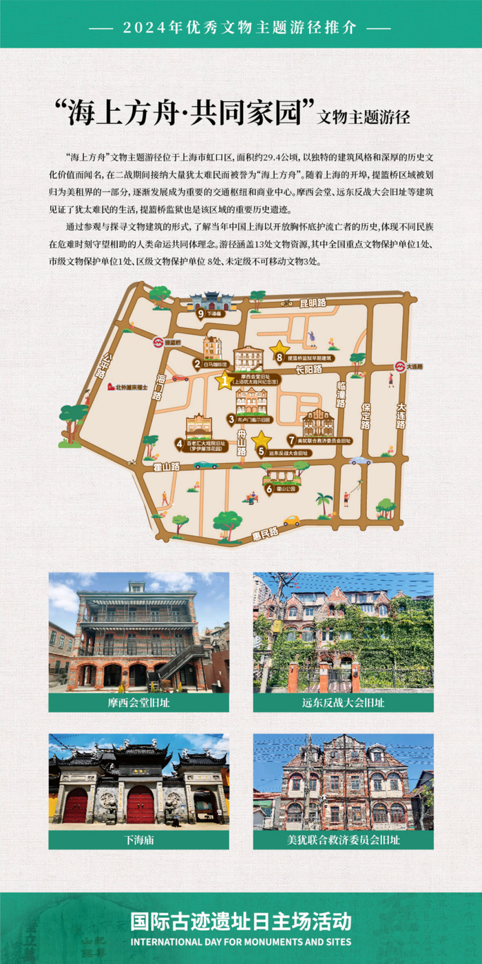 “海上方舟·共同家园”文物主题游径不仅是一次穿越时空的对话,更是一场跨越文明的实践教育。通过沉浸式体验,参与者将切身感受上海作为“海上方舟”的厚重历史,理解多元文化如何在这片土地上共生共荣,进而深化对城市精神内核的认同。“海上方舟·共同家园”文物主题游径不仅是对人类逆境中坚韧史诗的回望,更成为探讨遗产韧性、社区共生与城市更新的鲜活案例——在这里,每一块砖石都不只是过去的遗存,而是构建包容性未来的基石。