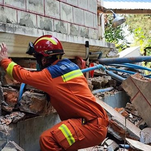 但灾情不容犹豫。3月29日晚,抵达内比都欧达拉蒂利医院救援现场,队员们立马充满斗志。“任务来了,这是每个应急救援人的本能反应。”穆树元和队员们迅速行动起来,对现场进行安全评估、寻找生命迹象,并积极与缅方救援力量沟通协调……