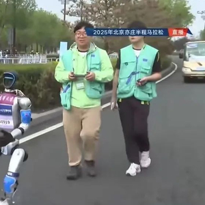 4月19日,全球首届人形机器人半程马拉松收官。多个网传视频显示,宇树科技G1人形机器人开跑即摔倒,随后起身向观众挥手致意,再次投入比赛。