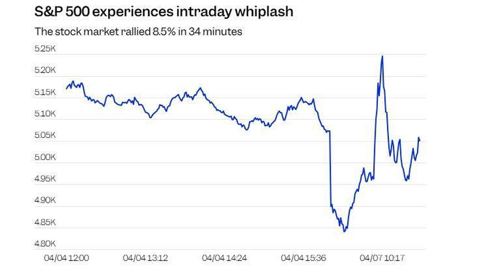 受此消息影响,原本开盘暴跌的美股由跌转涨,其中仅标普500指数就因该传闻在34分钟内飙升8.4%。