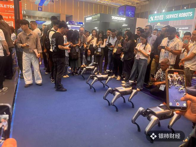 在服务机器人专区,机器狗绝对算得上是“顶流”,宇树科技、云深处科技、西湖机器人等展位都带来了自家的机器狗产品,它们自带流量,获得各国客商的关注。