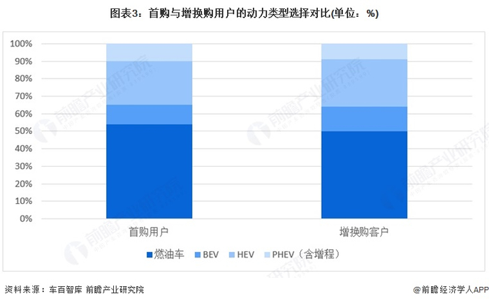 3、首购用户选择PHEV的比例略高于增换购用户