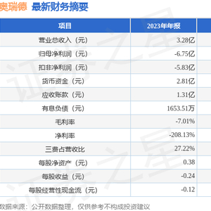 据证券之星公开数据整理,近期奥瑞德(600666)发布2024年年报。截至本报告期末,公司营业总收入3.66亿元,同比上升11.61%,归母净利润-1.71亿元,同比上升74.62%。按单季度数据看,第四季度营业总收入7510.72万元,同比下降12.76%,第四季度归母净利润-1.44亿元,同比上升71.48%。本报告期奥瑞德盈利能力上升,毛利率同比增幅294.02%,净利率同比增幅77.12%。
