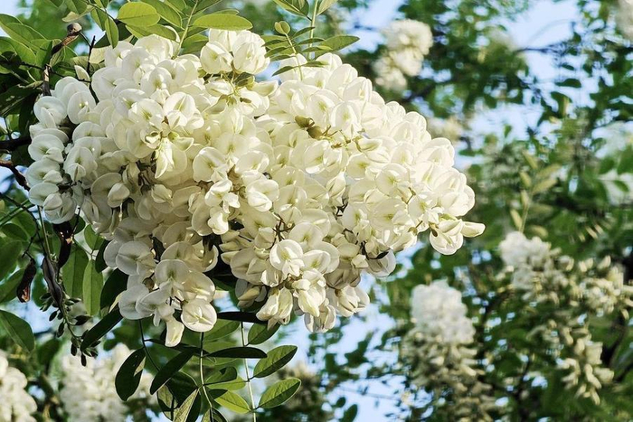 槐花除了能泡水喝之外,还能做很多美食,比如槐花饼、槐花饺子、蒸槐花、槐花炒鸡蛋。