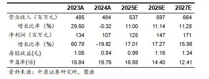 事件:公司公布2024年年报,2024年公司实现营业收入4.83亿元,同比下滑0.32%,实现归属母公司的净利润1.07亿元,同比下滑19.82%,扣非后的归母净利润1.01亿元,同比下滑21.31%,基本每股收益0.84元。