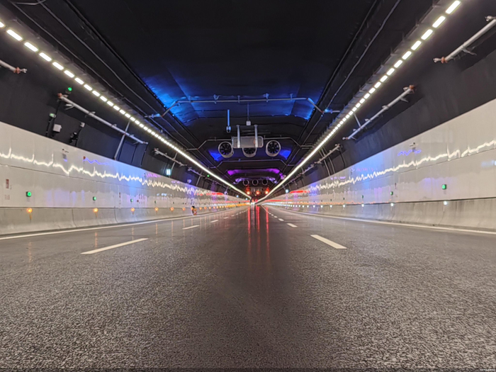 为确保东六环隧道安全开通,运营企业高效运用东六环隧道智慧化综合管控平台,对行车数据进行精细化查询管理,结合隧道全覆盖视频,实现隧道内车辆全线动态跟踪,提高隧道事件的检测水平。隧道内定向广播、可变情报板、车道指示灯等设施可根据联动控制预案实现按车道管控,同时配备可根据自然光照环境智能调节的照明系统,可有效保障车辆安全行驶。