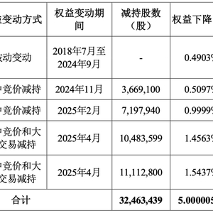 持股降至5%以下