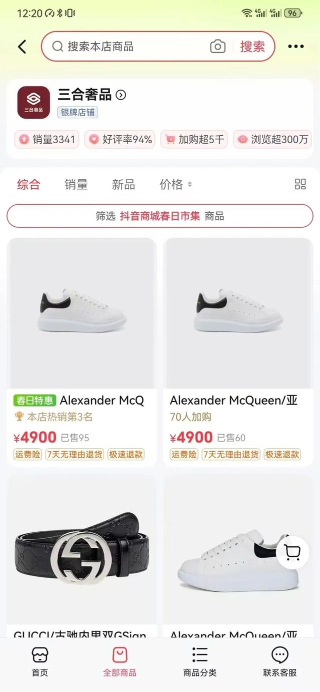 记者调查发现,涉事的两家奢侈品售卖店铺如今已在平台上搜索不到。而根据赵先生提供的店铺截图显示,该店铺此前已售出3341件商品,仅这款小白鞋的链接就显示已售95双。