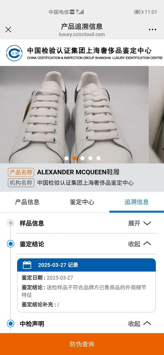 “GUCCI皮带的金属扣色泽,和我朋友的正品一比,差异太明显了;麦昆小白鞋的鞋底橡胶质感也完全不对。”