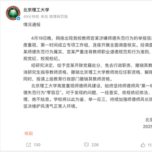 北京理工大学高度重视师德师风建设,始终坚持师德师风“第一标准”,对师德失范行为“零容忍”。对于发现的问题,一经查实,依规依纪依法、从严从快处理,绝不姑息。学校将以此为鉴、举一反三,持续加强师德师风长效机制建设,坚决维护风清气正育人环境。