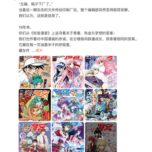 19年来,你们从《知音漫客》上追寻着关于青春、热血与梦想的答案;我们也怀着对中国漫画的赤诚,在分镜格间跌撞成长,探索着相同的答案。它藏在每一页油墨未干的呼吸里,藏在作者笔尖划过稿纸的沙沙声里,藏在编辑部催稿校对的灯光里,更藏在你们攥着零花钱奔向报刊亭的脚步里。