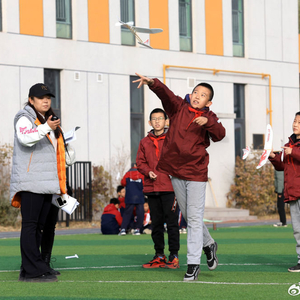 桥西区草场街小学学生在科技运动会上进行动力飞机留空时赛 梁子栋 摄
