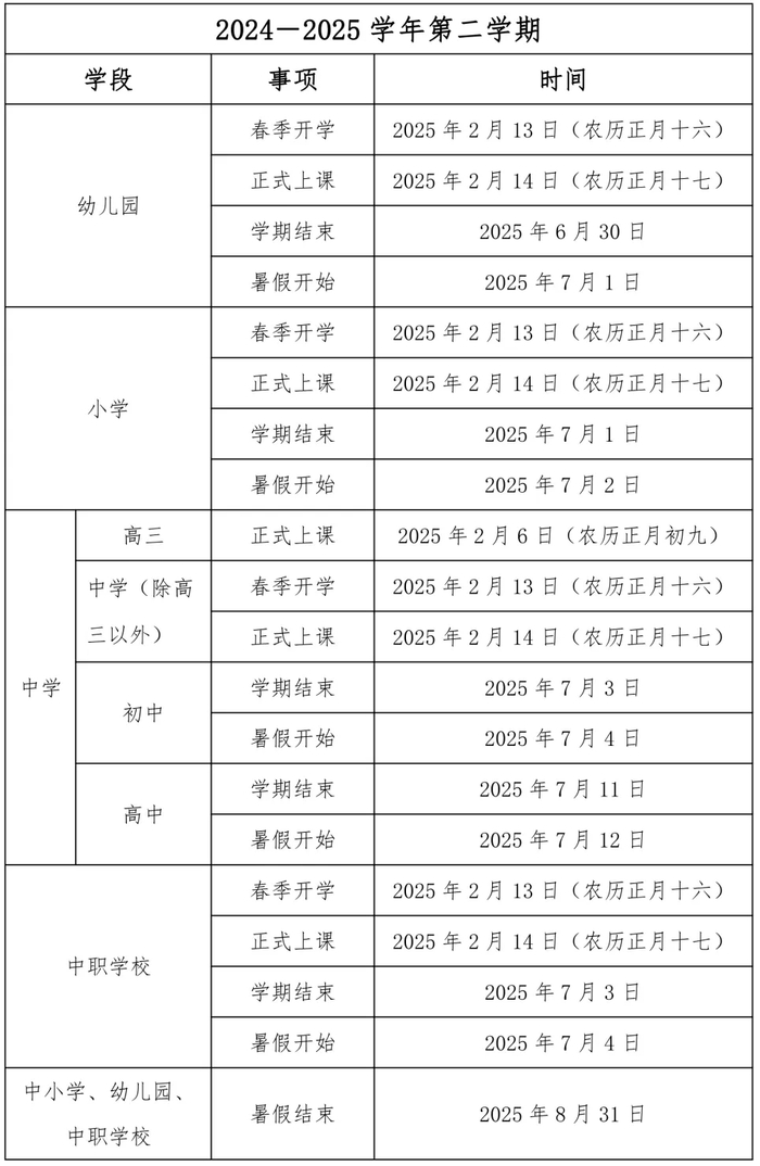 以上放假时间均来自校历,具体放假时间还是以学校通知为准!