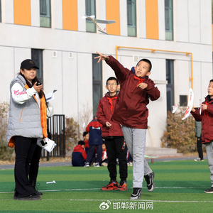 桥西区草场街小学学生在科技运动会上进行动力飞机留空时赛 梁子栋 摄