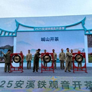 中新网福建安溪4月20日电 (记者 孙虹)“开茶咯!”在嘹亮的“喊山”声中,中国乌龙茶之乡、名茶铁观音发源地福建省泉州市安溪县喊山开茶,开启2025年春茶采摘工作。